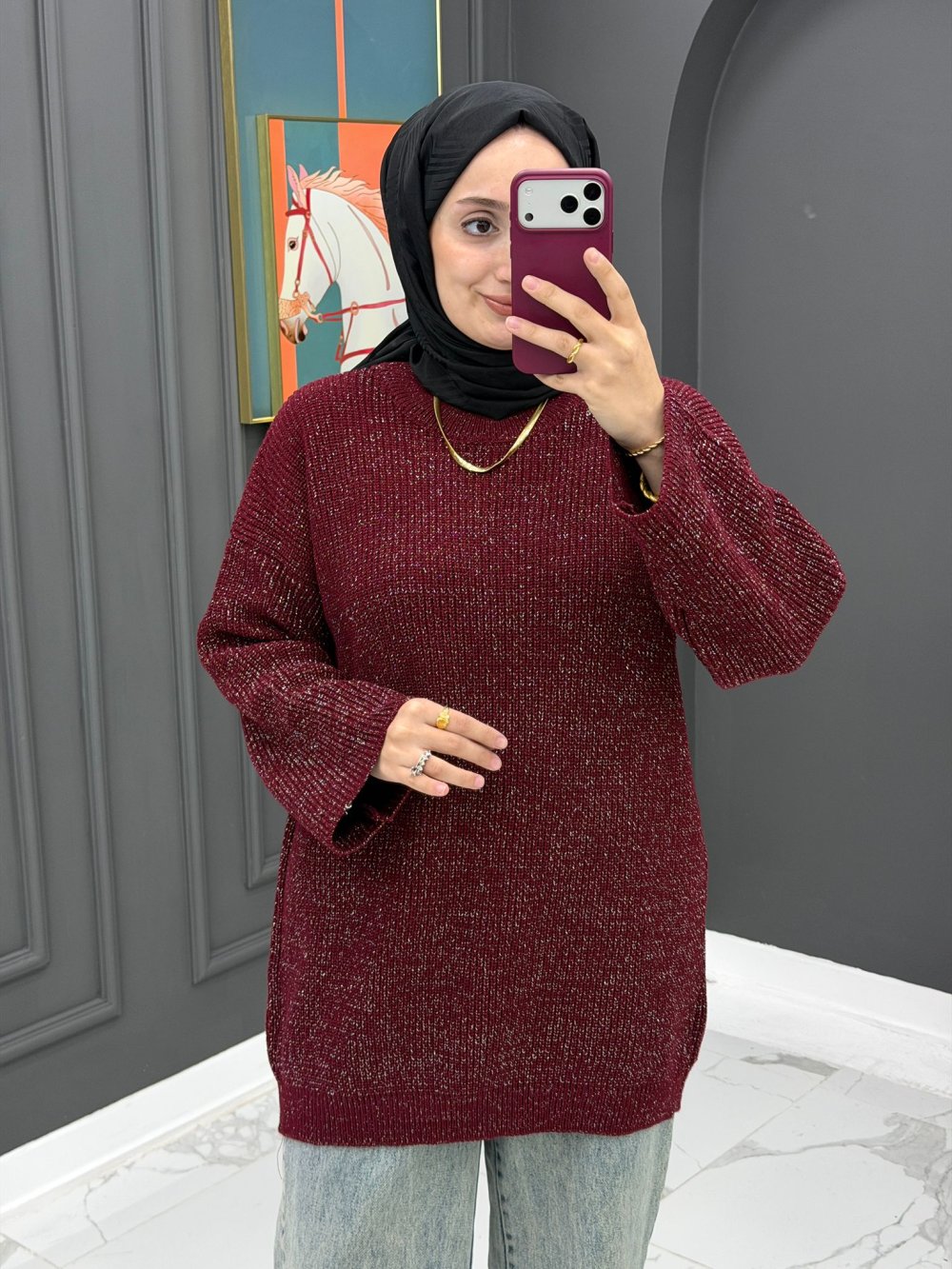 Simli Triko Kazak - Bordo