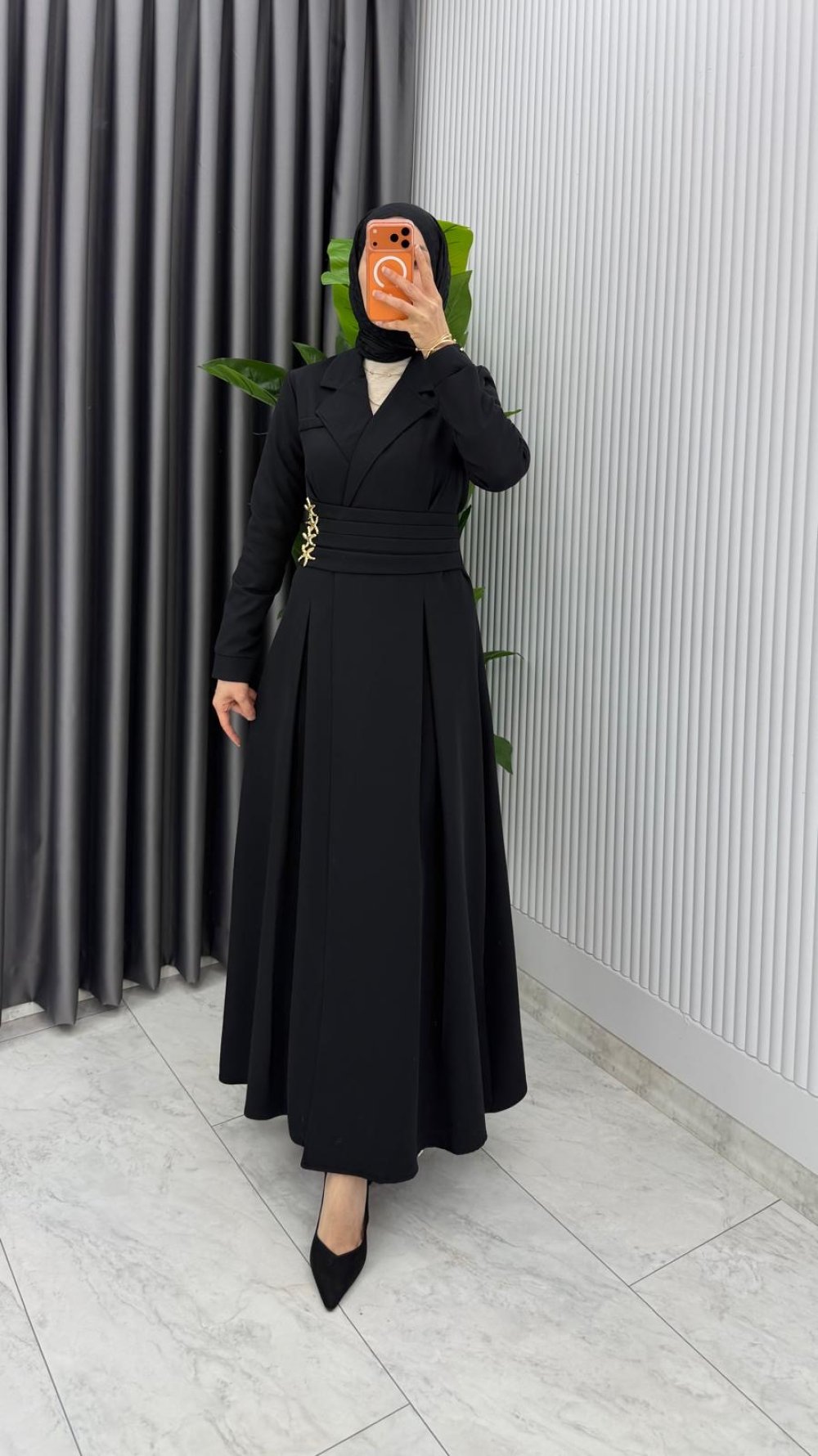 Siyah Premium Hülya Ferace Elbise Tesettür Giyim