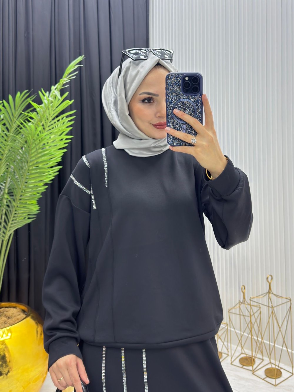 Taş Detay Takım Siyah Siyah
