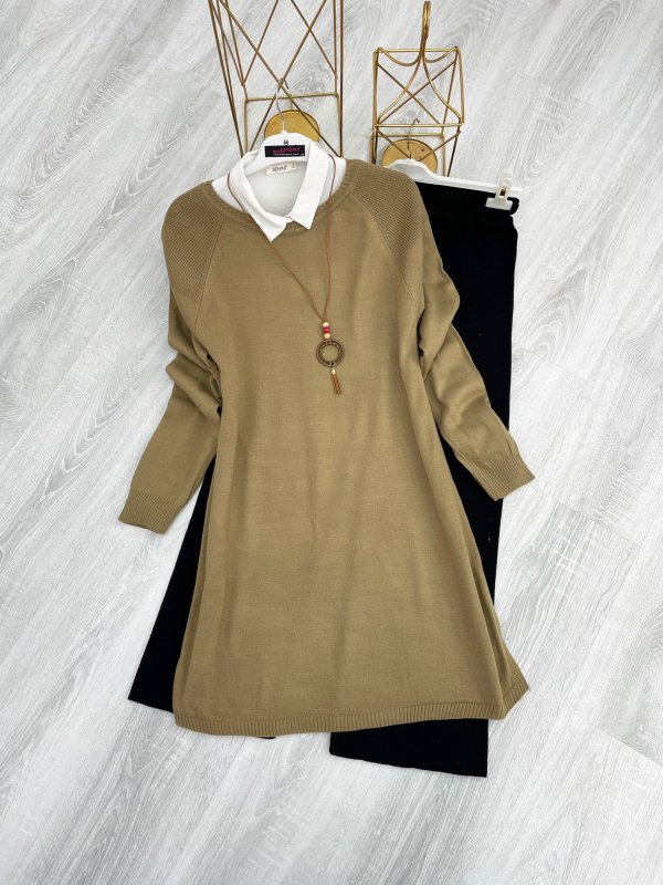 Ürünün Beden Aralığı;standart beden (36-44 beden arası uyumlu ) Tunik boyu;80 /85 cm Triko kumaş Kolye kombin amaçlıdır satılık değildir Kışlık kullanıma uygundur Ürün renginde konsept çekimlerinden dolayı ton farklılığı olabilir