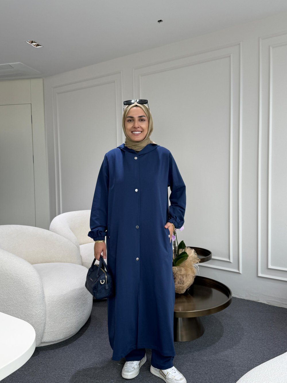 Uzun Kapüşonlu İkiiplik Takım Lacivert