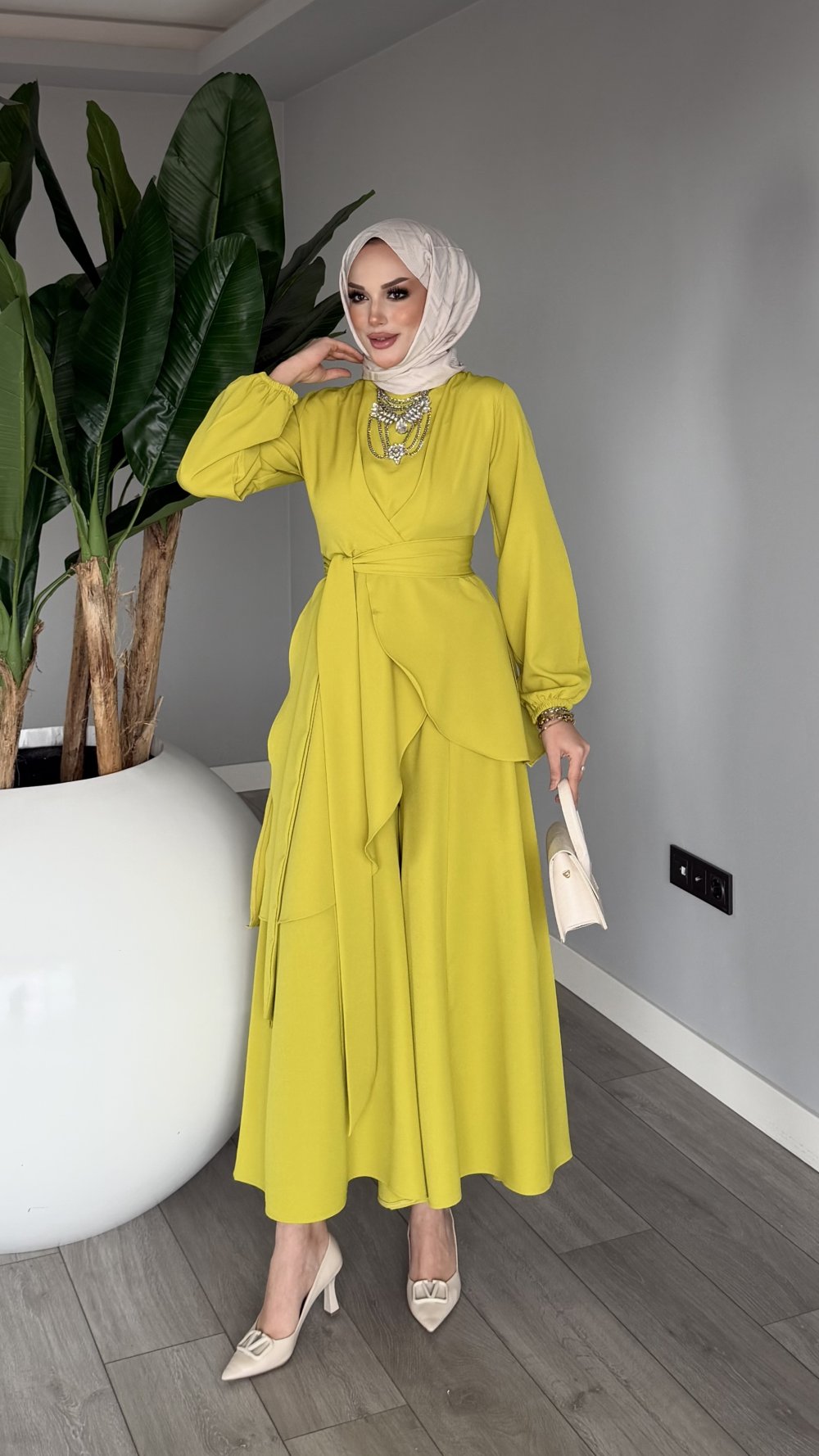 Yağ Yeşil Cevher Pantolon Takım Tesettür Giyim