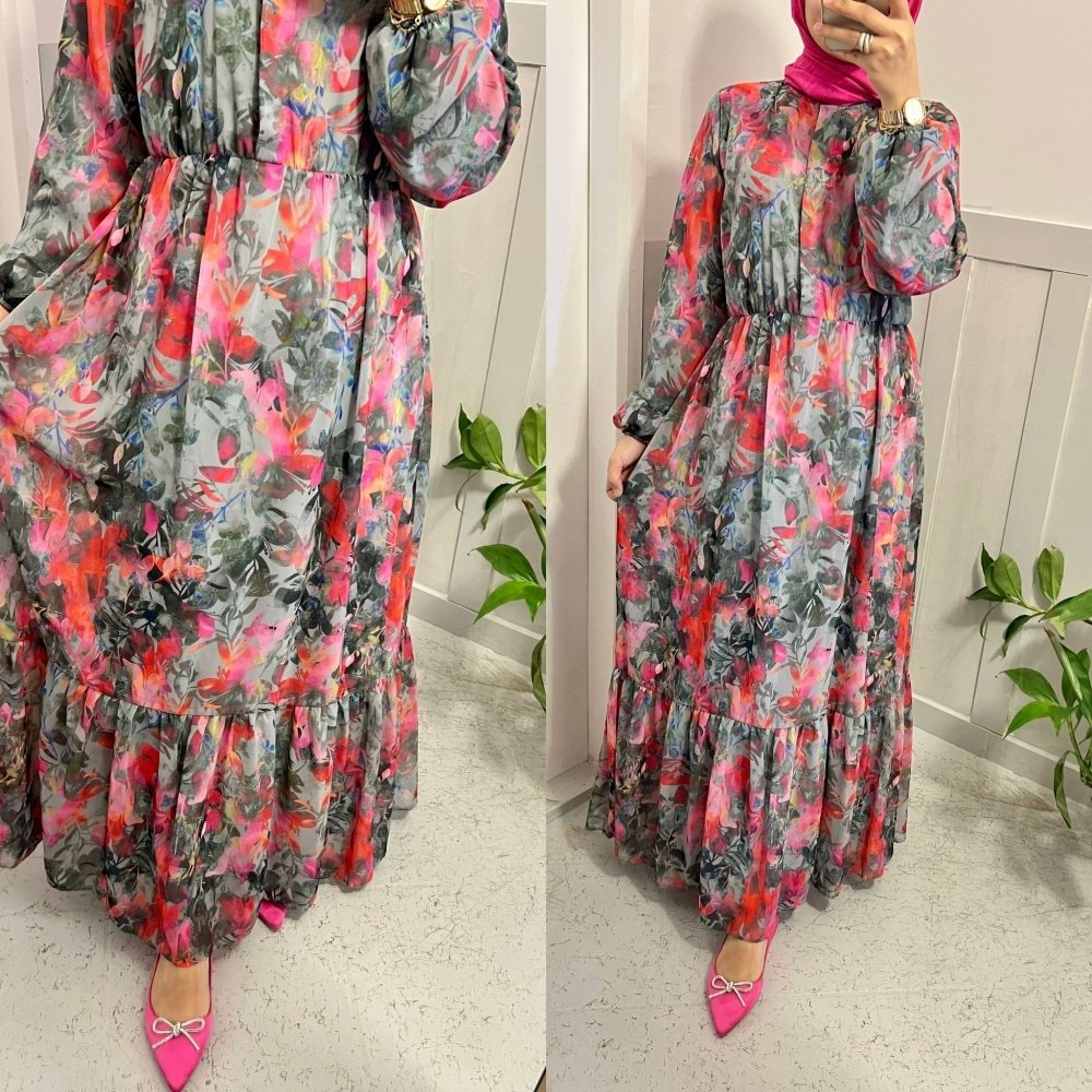 Yaprak Astarlı Şifon Elbise