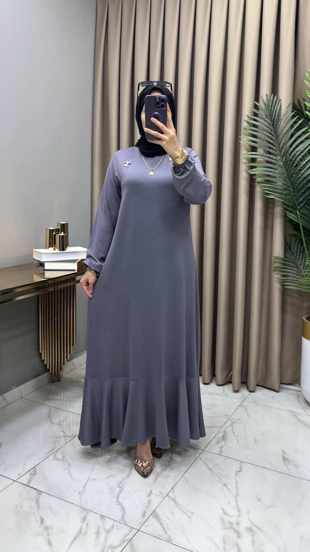 Yonca Elbise Broş Hediyeli Gri