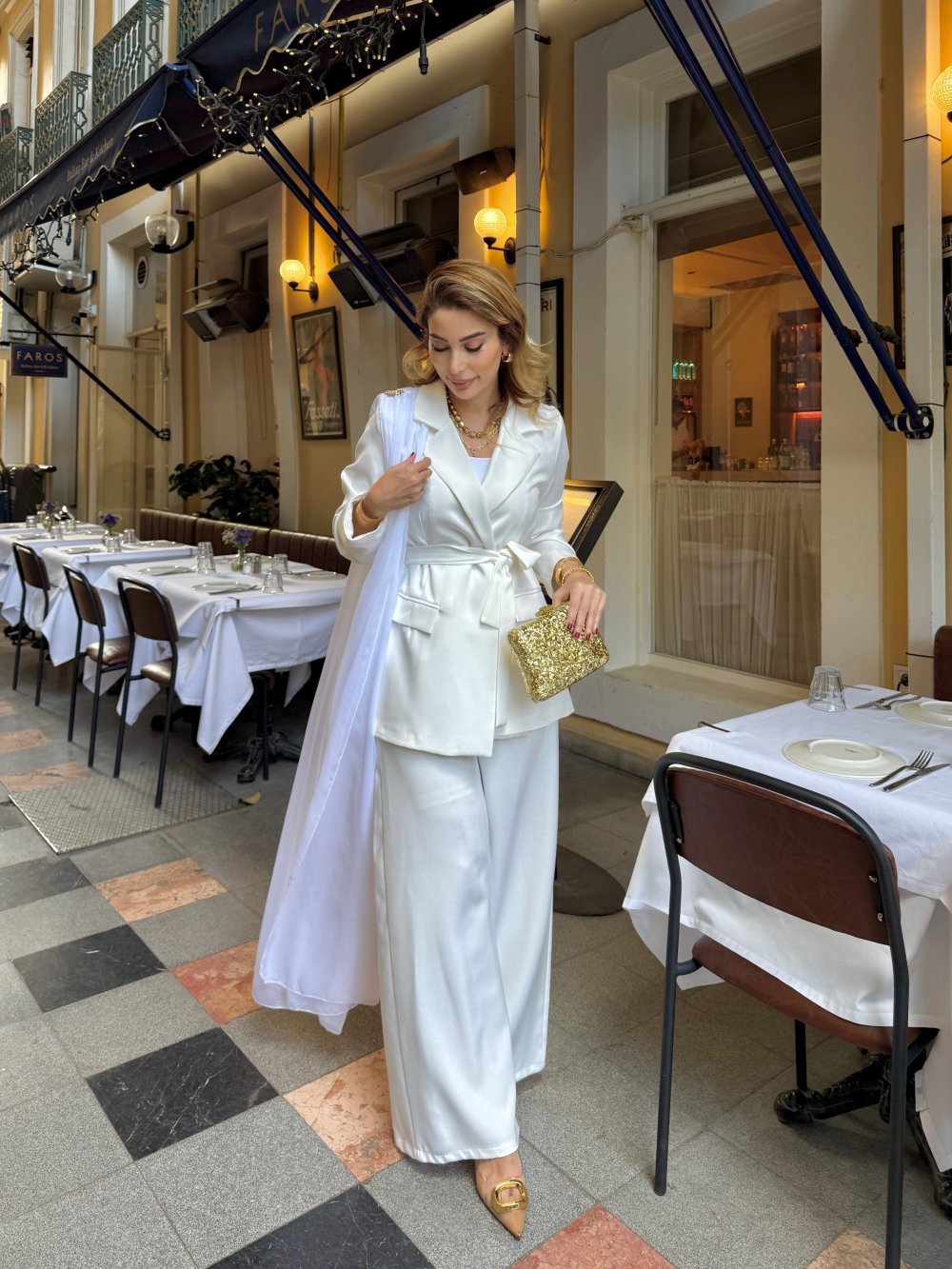 Takım Üst Uzun Şifon Tül Detaylıdır.