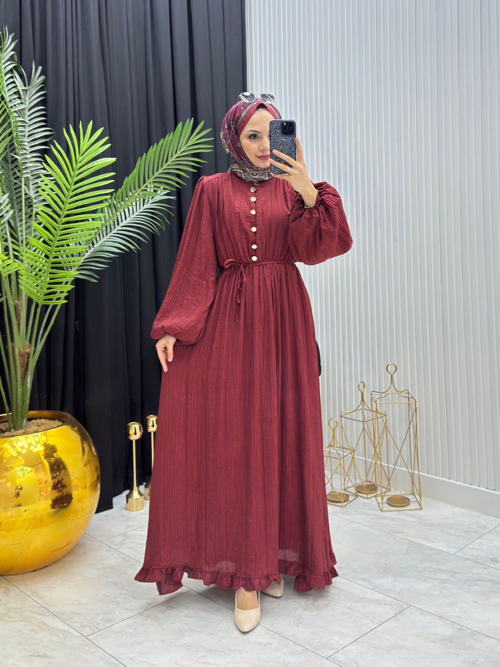 Zeynep Elbise Bordo Bordo