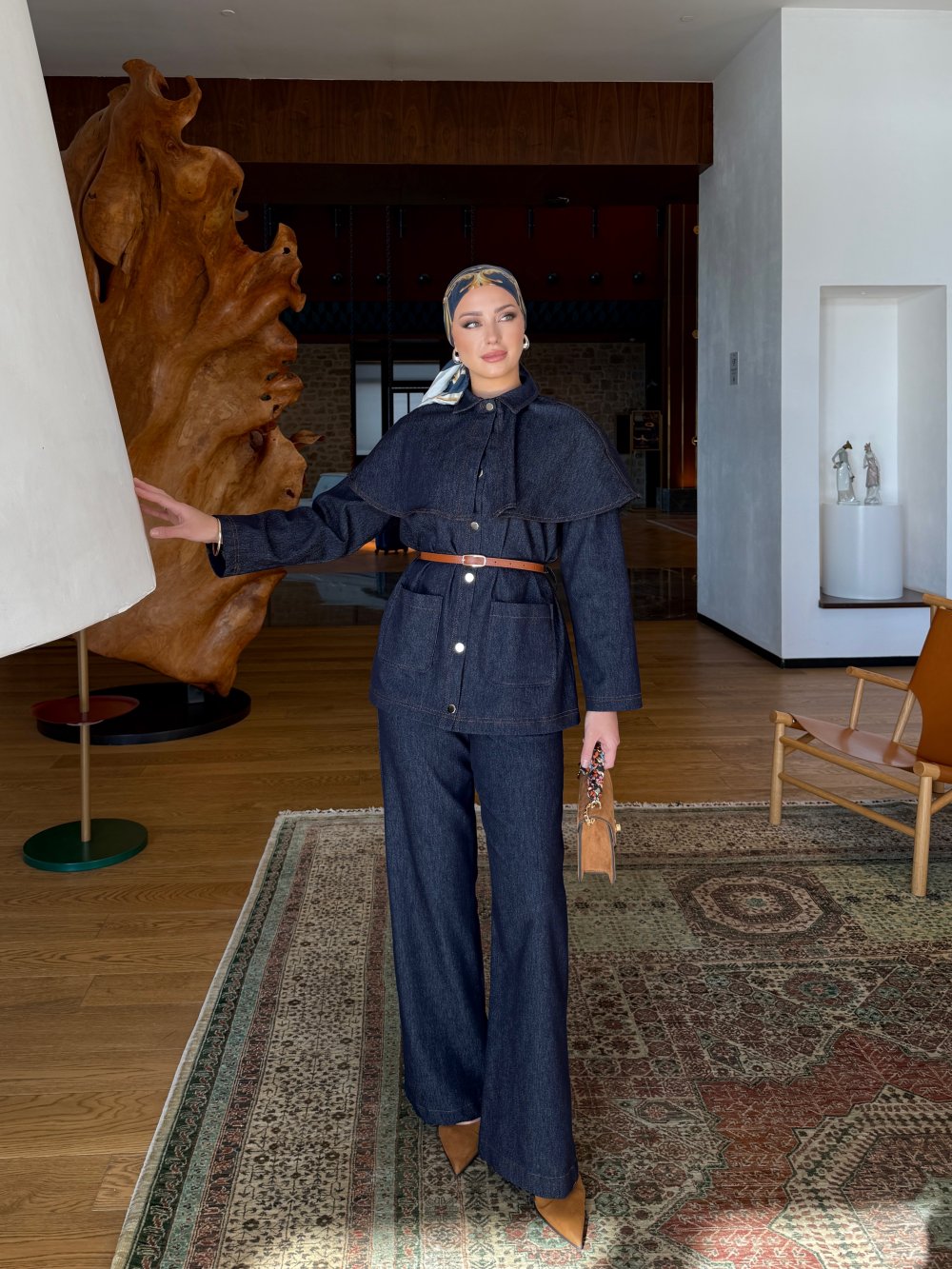 Zülal Pantolonlu Takım Cep ve Kuşak Detayları mevcuttur.